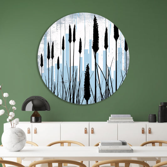 Minimalistisch silhouet van planten en skyline forex muurcirkel