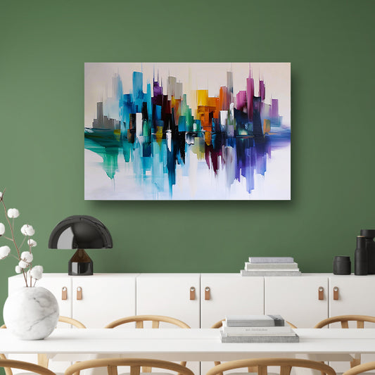 Abstracte stadsgezicht schilderij met dynamische kleuren canvas