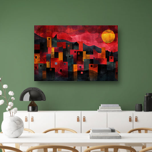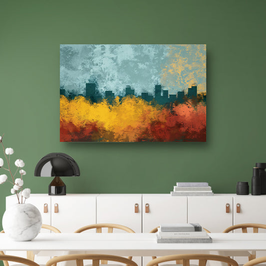 Kleurrijke abstracte skyline met natuur canvas