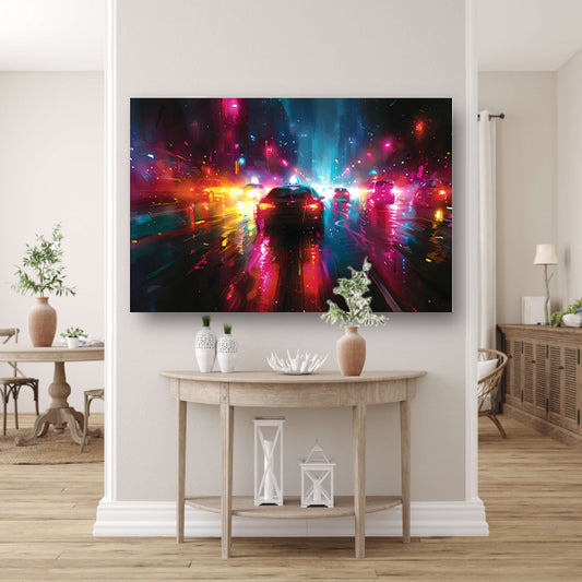 Dynamische Neonverlichte Stadsnacht poster