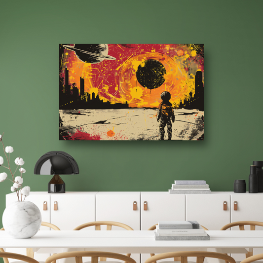 Futuristische skyline en astronaut verkenner poster