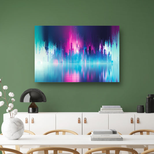 Abstracte stadsgezicht schilderij met dynamische kleuren poster
