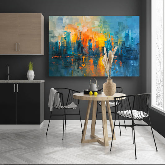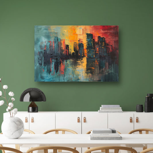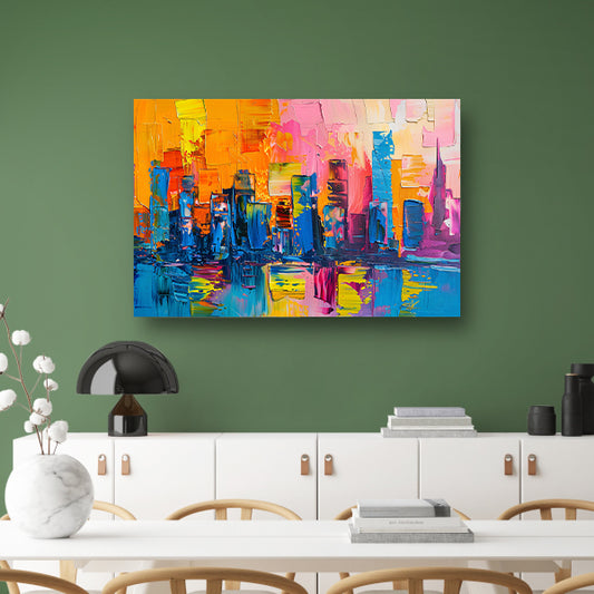 Kleurrijk abstracte skyline schilderij op doek acrylglas