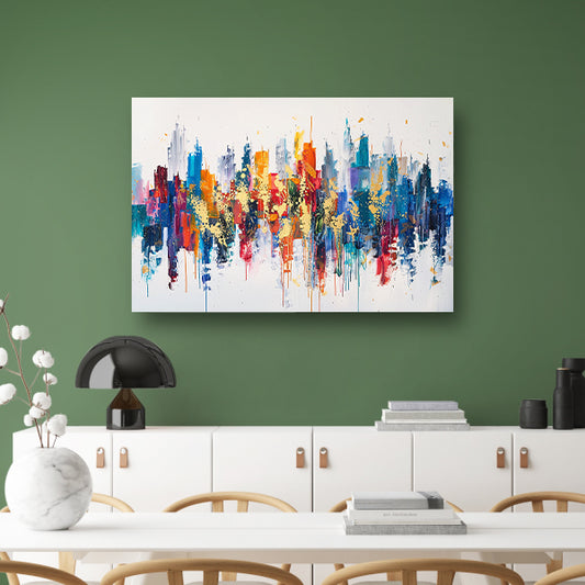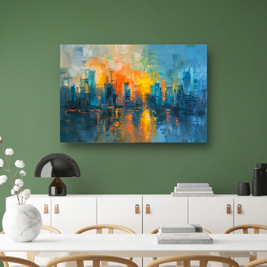 Levendige abstracte interpretatie van een stedelijke skyline acrylglas