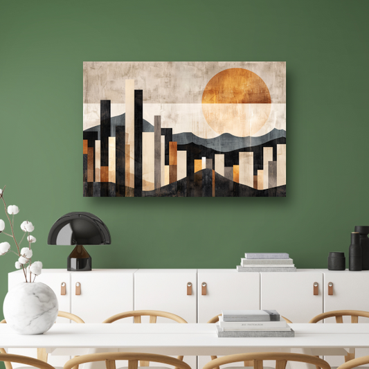 Minimalistische Stedelijke Skyline met Zon acrylglas