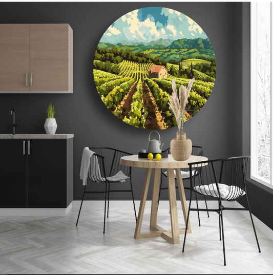 Idyllisch wijngaard landschap met boerderij forex muurcirkel