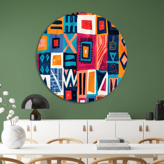 Kleurrijke Geometrische Abstracte Compositie aluminium muurcirkel