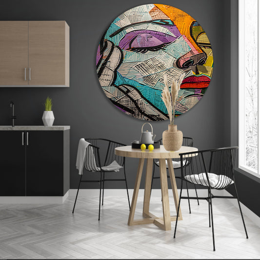 Kubistisch Portret van een Vrouw in Kleur aluminium muurcirkel