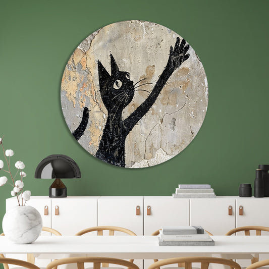 Zwarte kat op verweerde muur reikend omhoog forex muurcirkel