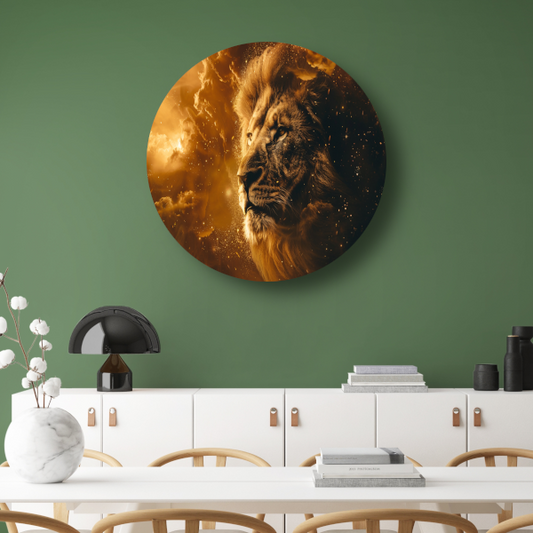 Gouden leeuw omringd door vurige gloed forex muurcirkel