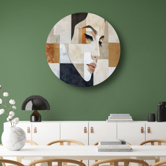 Geometrische Abstractie van een Vrouwengezicht aluminium muurcirkel