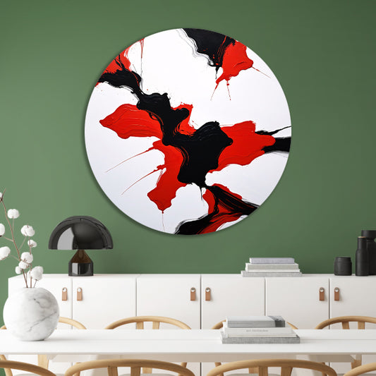 Contrastrijke abstractie in rood en zwart forex muurcirkel