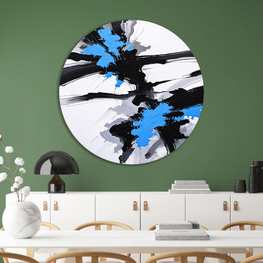 Energetische abstractie van blauw, zwart en wit forex muurcirkel