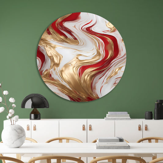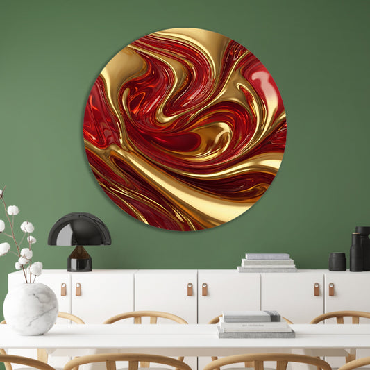 Gouden en Rode Abstracte Vloeibaarheid forex muurcirkel