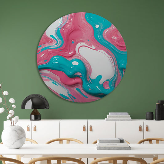 Vloeiende Abstractie in Roze en Turquoise forex muurcirkel