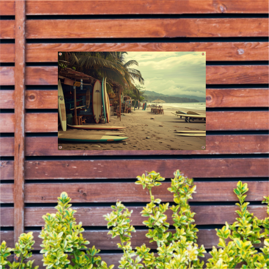 Sepia Surfplanken en Palmbladeren Collage tuinposter