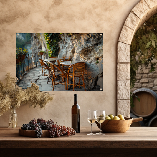 Rustiek Terras met Bistrostoelen bij Schemer tuinposter