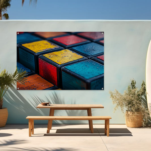 Kubus compositie in primaire kleuren tuinposter