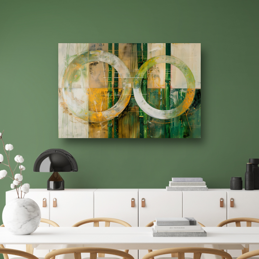 Moderne Bamboe en Gouden Cirkels Abstract canvas met baklijst