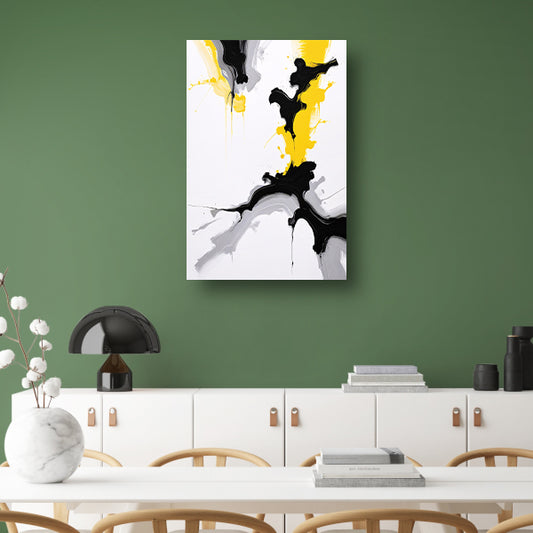 Dynamische Abstractie in Zwart en Geel canvas met baklijst
