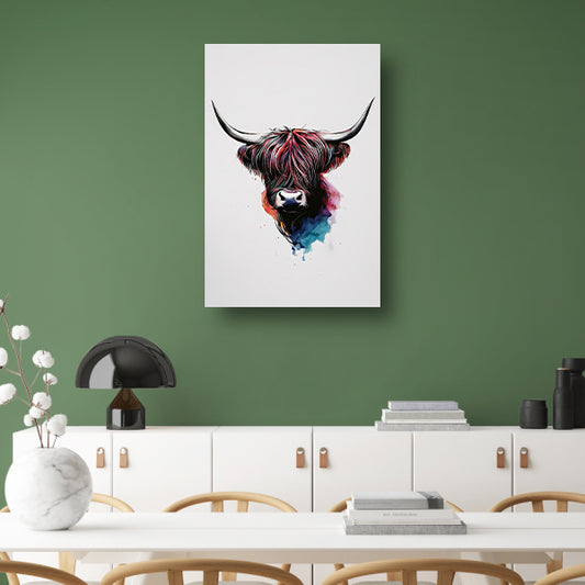 Moderne waterverfstijl Schotse hooglander met kleur canvas met baklijst