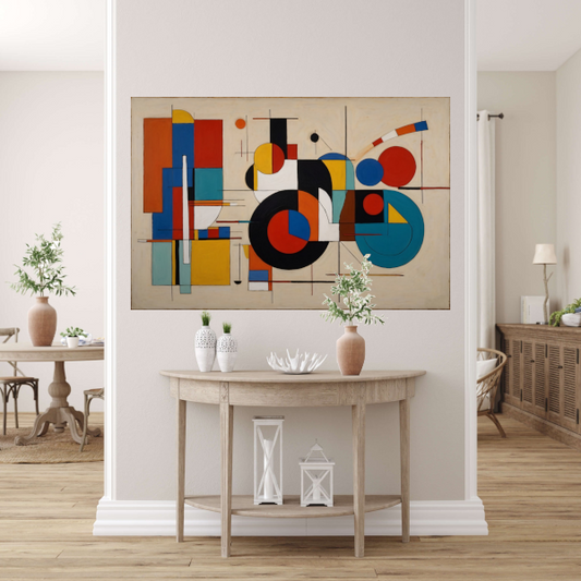 Geometrische Dans van Vorm en Kleur canvas met baklijst