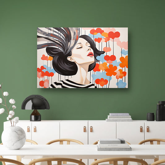 Silhouet van een Vrouw met Bloemen canvas met baklijst