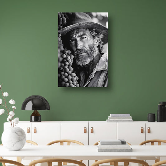 Blauwe druiven aan wijnrank in herfstlicht poster