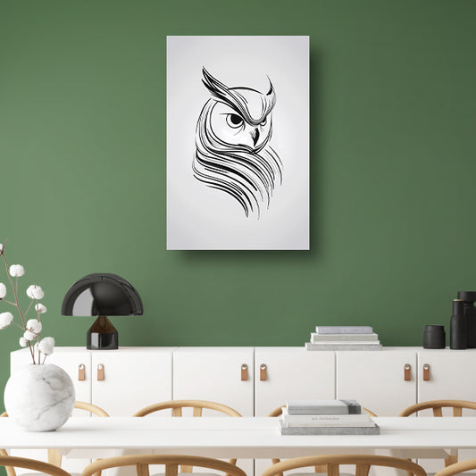Minimalistische zwart-witte uil lijntekening poster