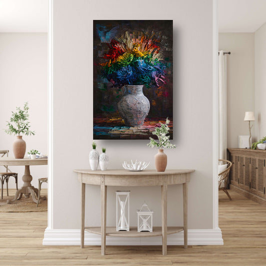 Kleurrijke Impressionistische Bloemen in Elegante Vaas canvas