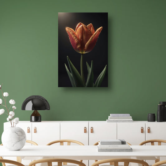 Dauwdruppels op levendige oranje tulp canvas
