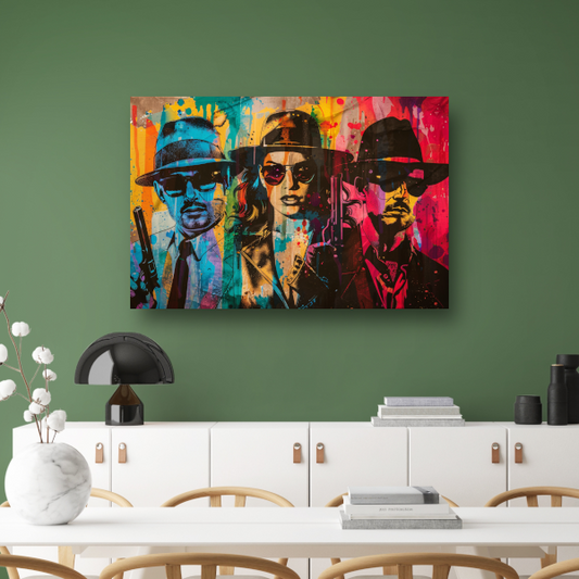 Geheimzinnige Maffiafiguren met Kleurrijke Achtergrond canvas