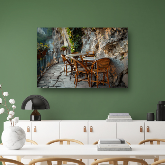 Rustiek Terras met Bistrostoelen bij Schemer canvas