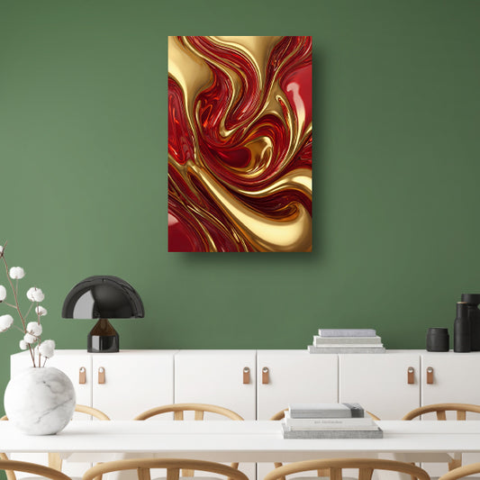 Dynamische Rode en Gouden Vloeistofbeweging poster