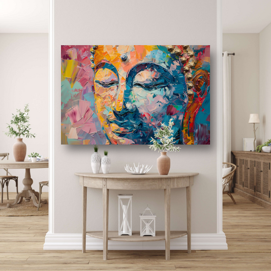 Abstracte Visie op Boeddha met Gouden en Zwarte Tinten poster