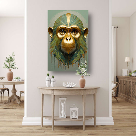 Gouden Aap met Kleurrijke Abstracte Achtergrond poster