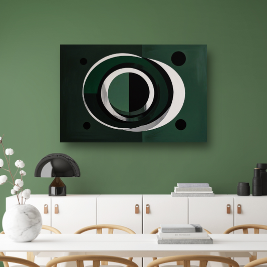 Overlappende Cirkels in Zwart, Wit en Groen poster