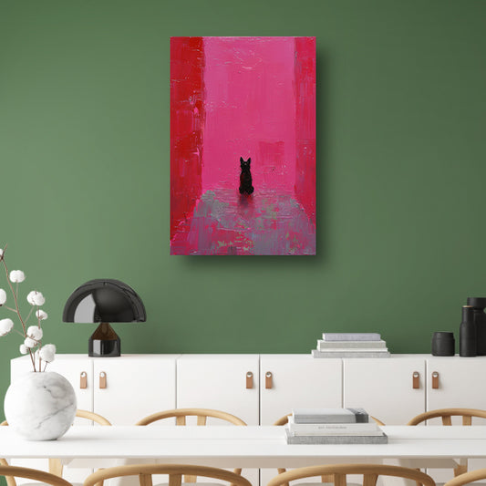 Minimalistische hond tegen roze achtergrond schilderij acrylglas