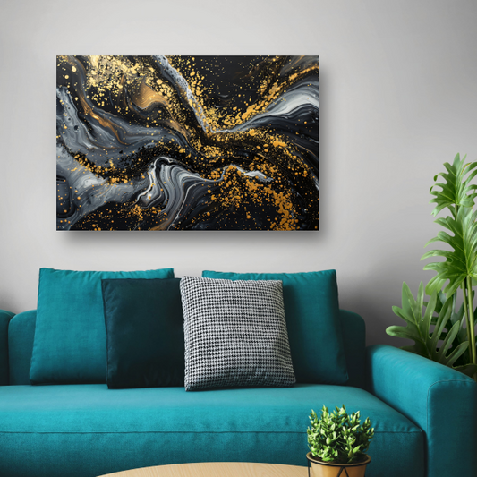 Dynamisch Golvend Abstract Goud en Zwart acrylglas