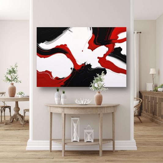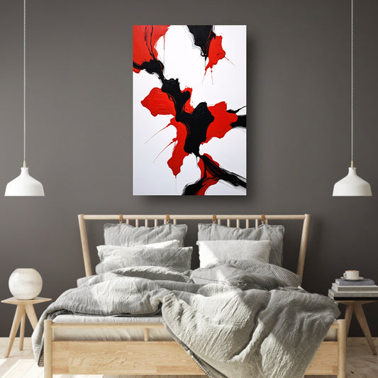 Contrastrijke abstractie in rood en zwart acrylglas