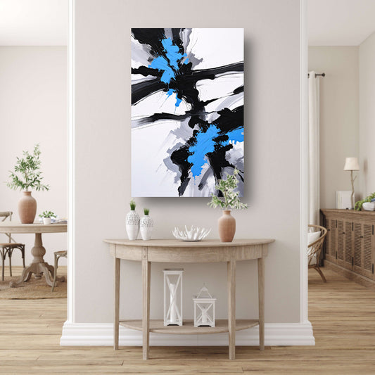 Energetische abstractie van blauw, zwart en wit acrylglas