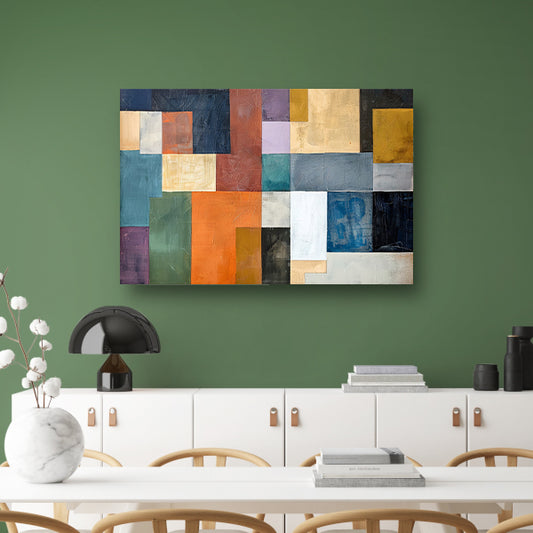 Kleurrijke abstracte vlakken met lijnen canvas met baklijst