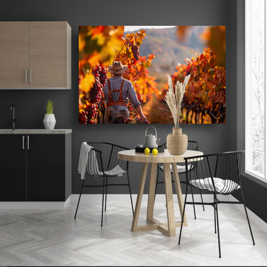 Herfstzonsondergang in levendige wijngaard acrylglas