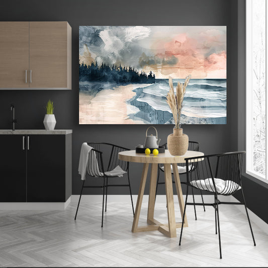 Surrealistisch strandlandschap met schilderachtige bomen canvas met baklijst