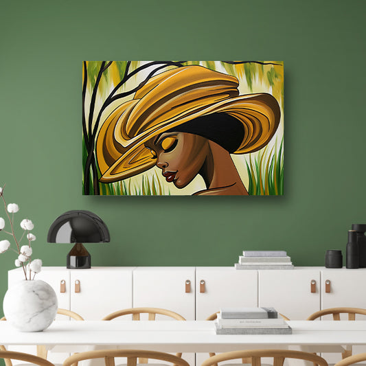 Moderne Afrikaanse vrouw met grote hoed canvas met baklijst
