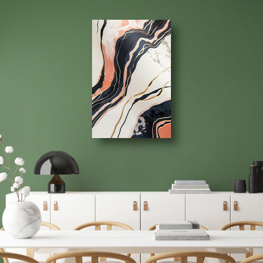Abstract kunstwerk met groene, bruine en rode patronen poster