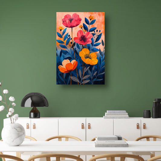 Moderne Kleurrijke Bloemenpracht op Levendige Achtergrond canvas met baklijst