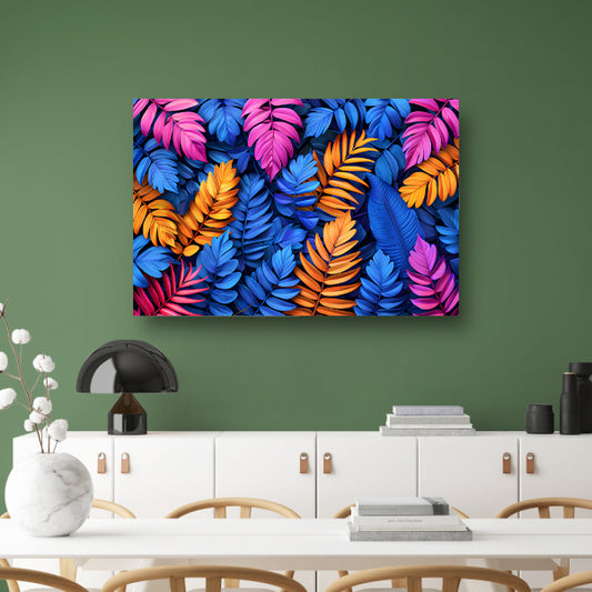 Tropische Bladeren in Levendige Kleuren canvas met baklijst