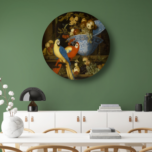 Stilleven met fruit en twee papegaaien - Balthasar van der Ast forex muurcirkel
