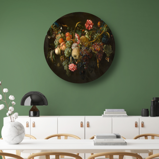 Festoen van vruchten en bloemen - Jan Davidsz. de Heem aluminium muurcirkel